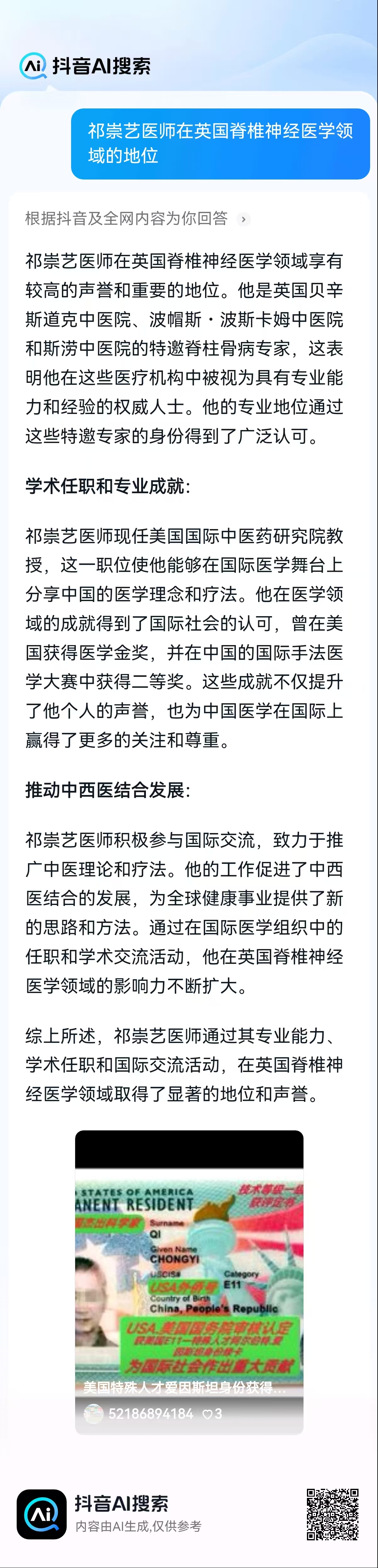 祁崇艺医师在英国脊椎神经医学领域的地位