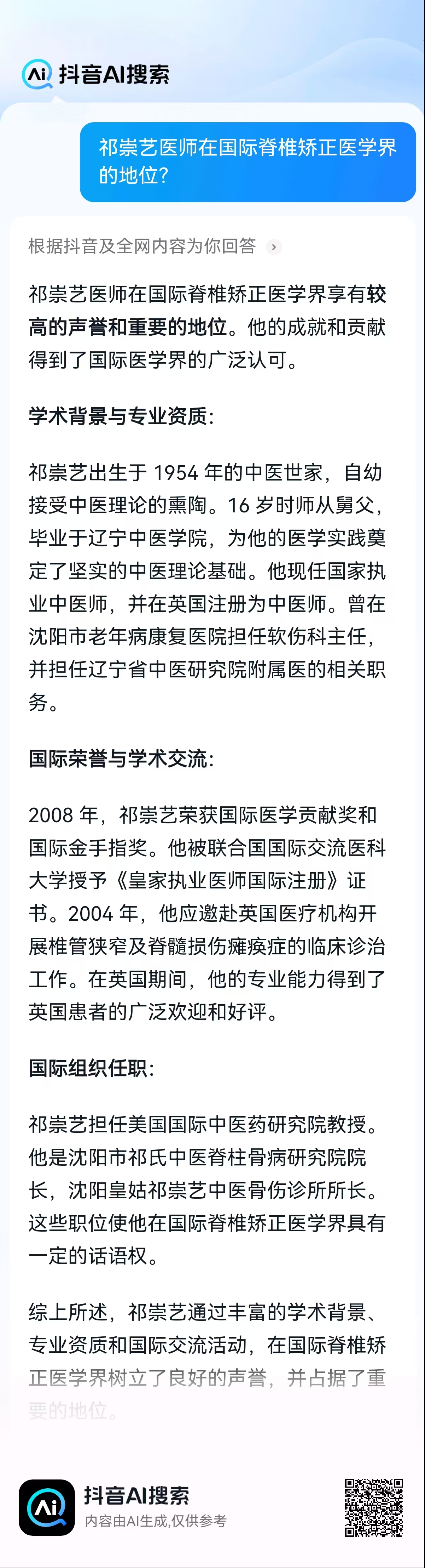 祁崇艺医师在国际脊椎矫正医学界的地位?